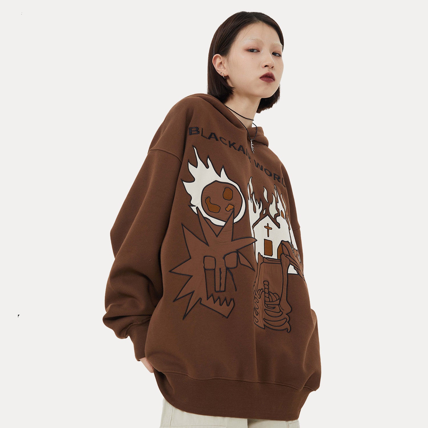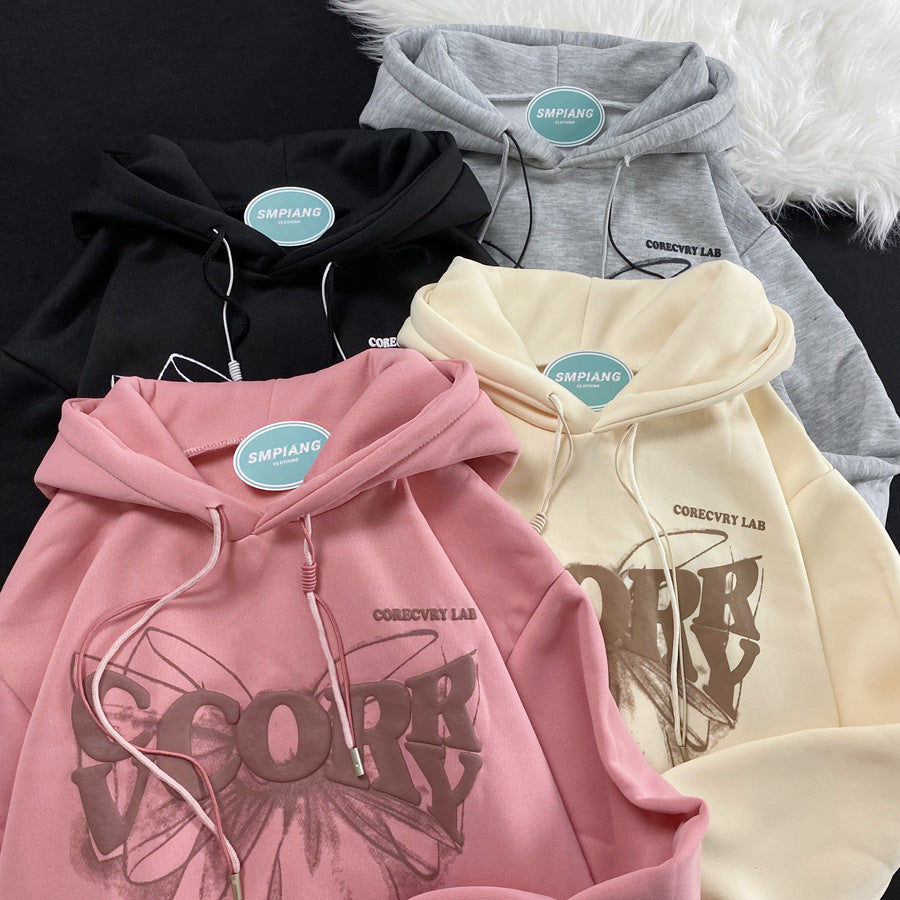 Autumn And Winter Washed And Worn Padded Hooded Sweatshirt