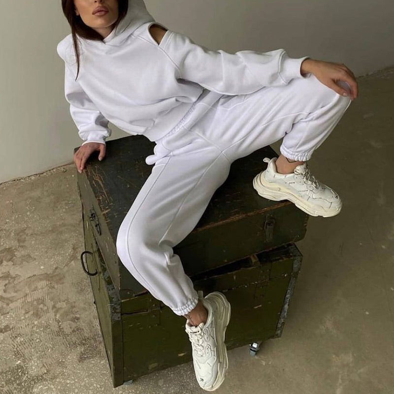 Women's Solid Casual Simple Sports Hooded Sweater Trousers Suit
