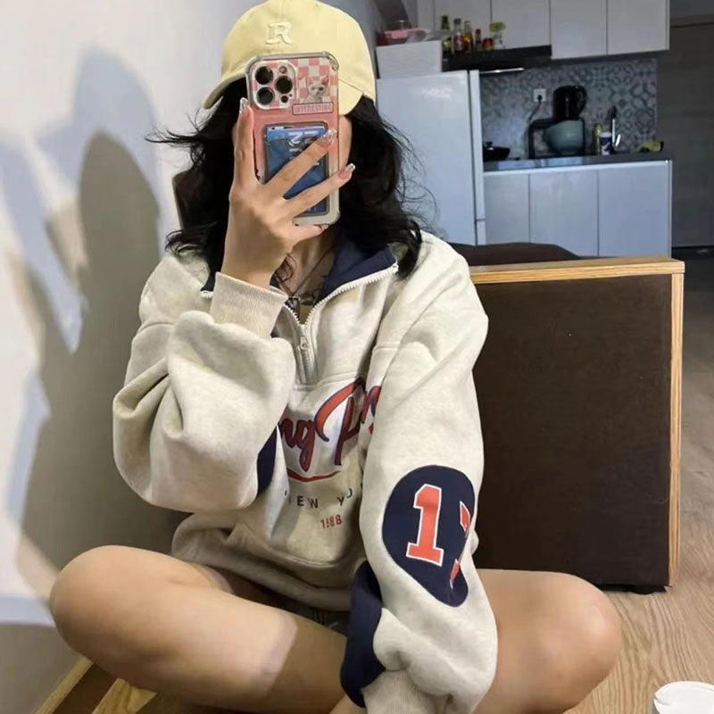 Loose Letter Printed Fleece Sweater For Women