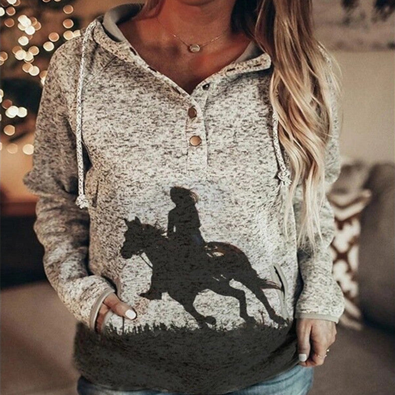 Printed Hoodie Fashion Long Blouse