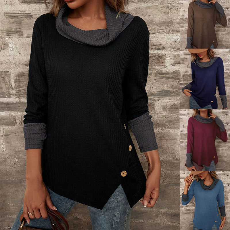 Waffle Half High Collar And Long Sleeves