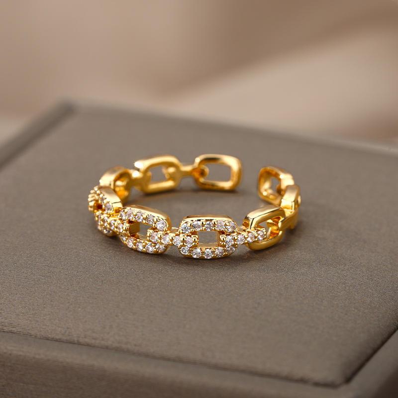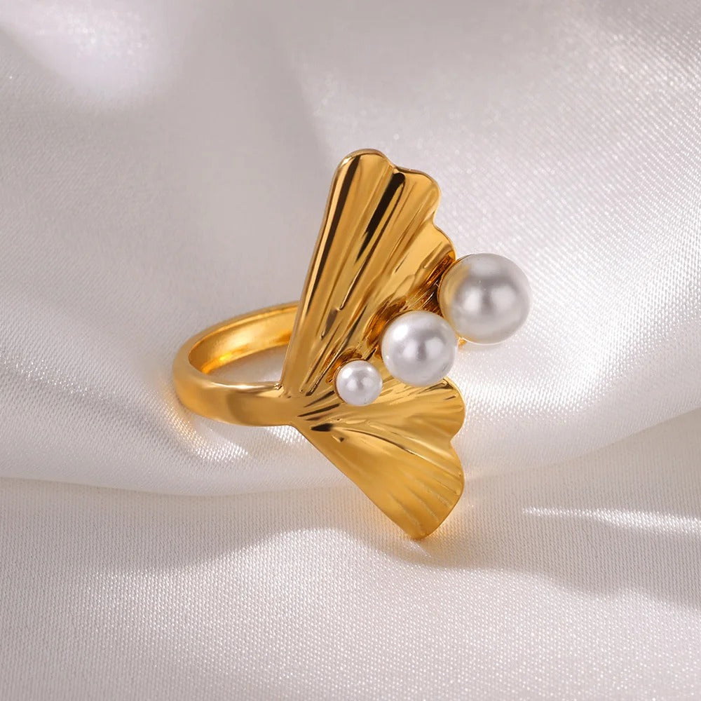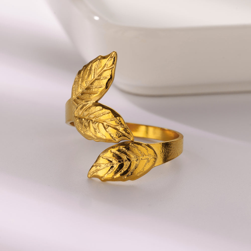 Adjustable Gold Leaves Ring for Women - Stainless Steel Statement Jewelry