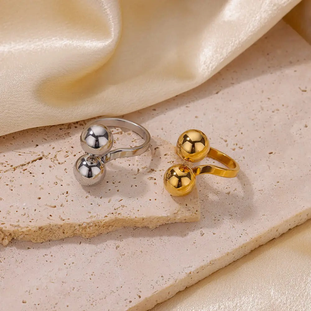 Double Ball Stainless Steel Rings for Women - Smooth Opening Band Party Jewelry