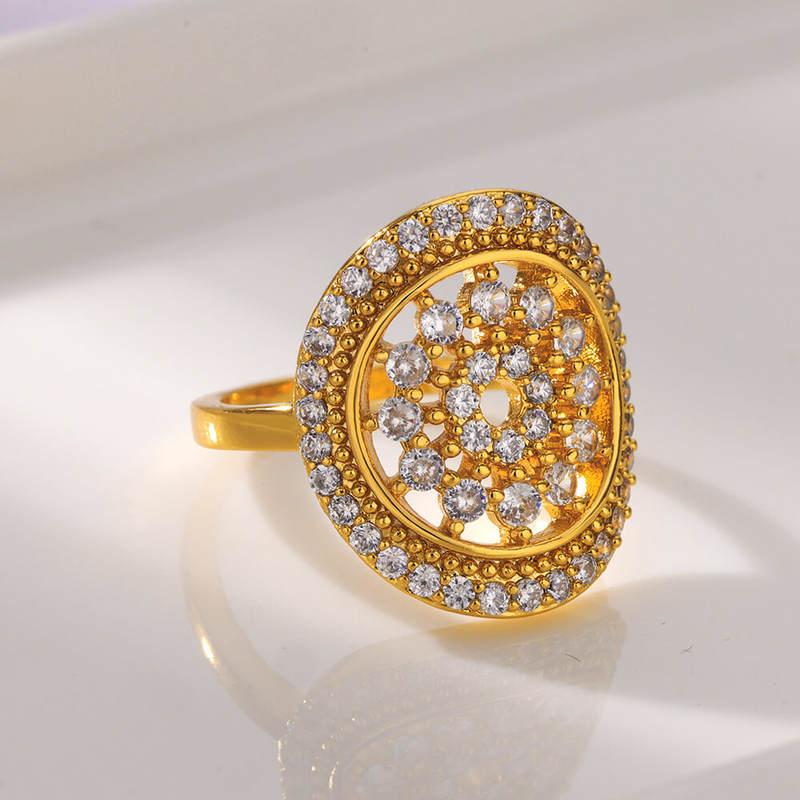 Cubic Zirconia Flora Gold Stainless Steel Ring