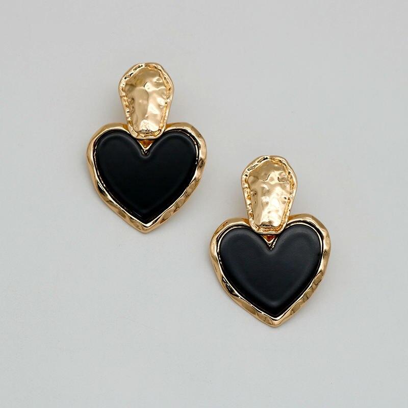 Black Heart Drop Earrings - Vintage Zinc Alloy Fashion Jewelry