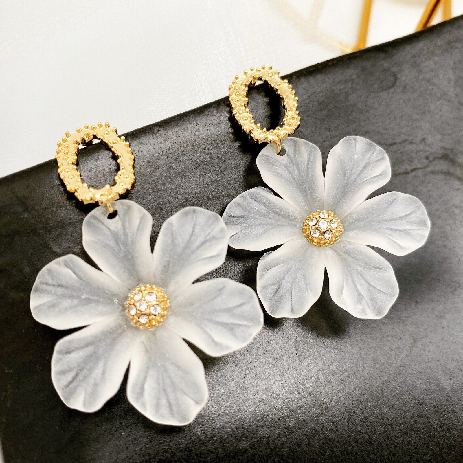 Trendy Zinc Alloy Cream Enamel Petal Earrings