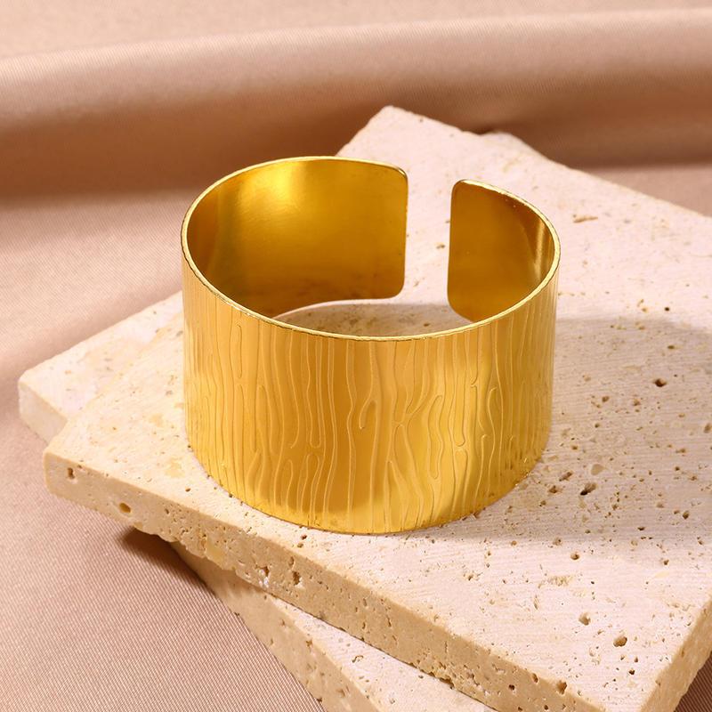 Gold Stainless Steel Geometric Open Cuff Bracelet