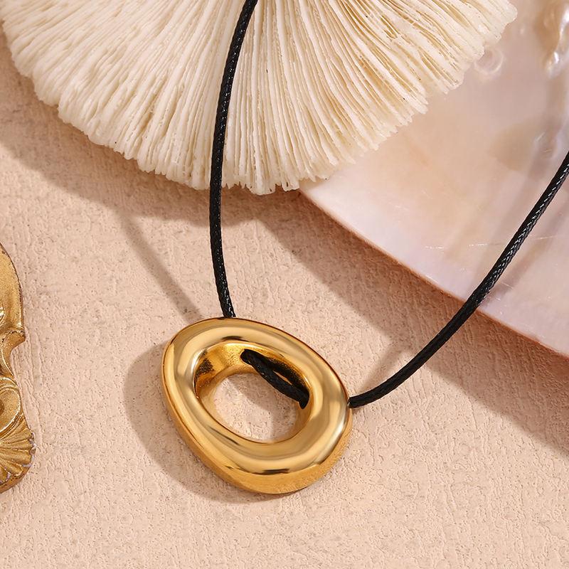 18K Gold Plated Oval Convex Pendant with Black Rope Necklace