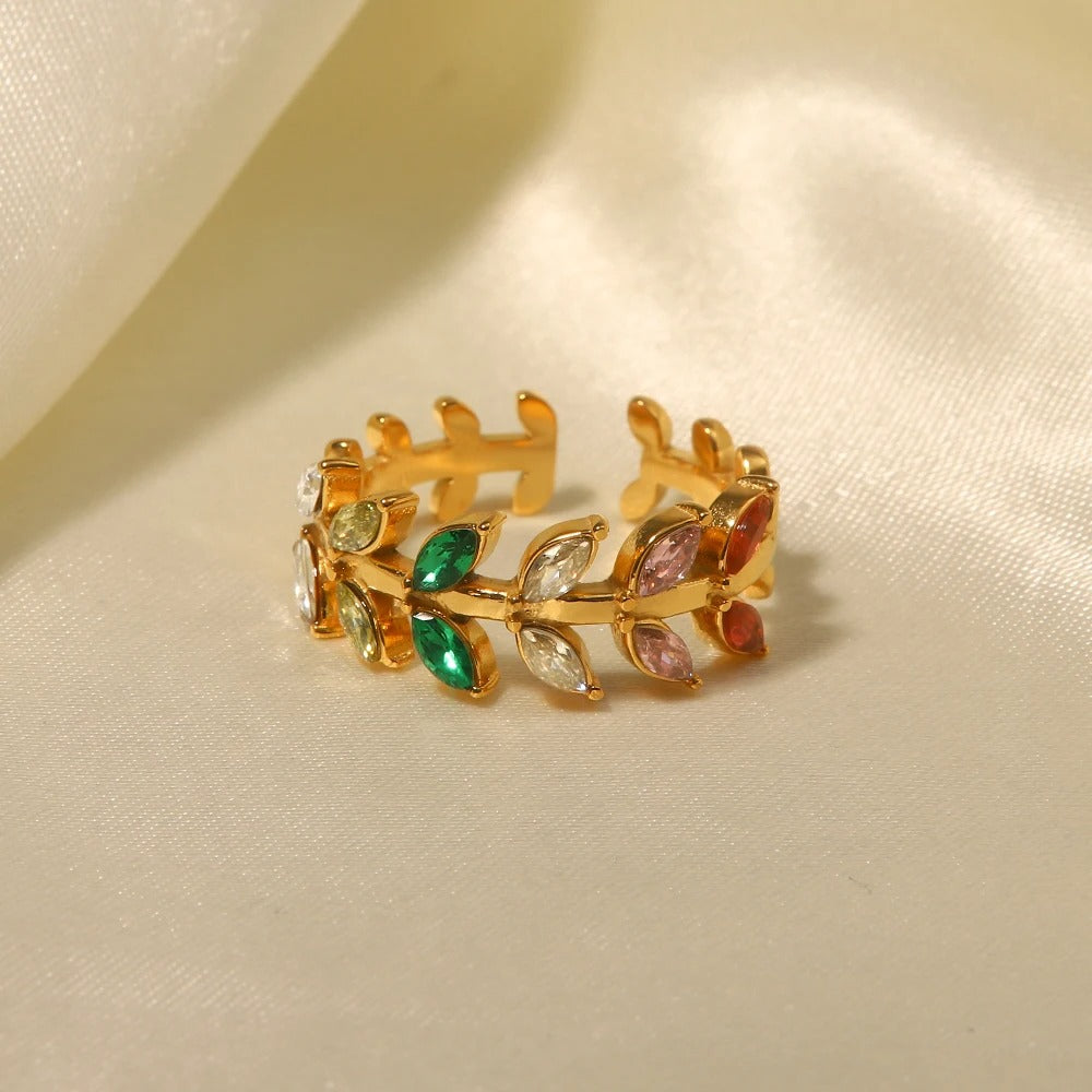 18K Gold Plated Cubic Zirconia Adjustable Leaf Ring
