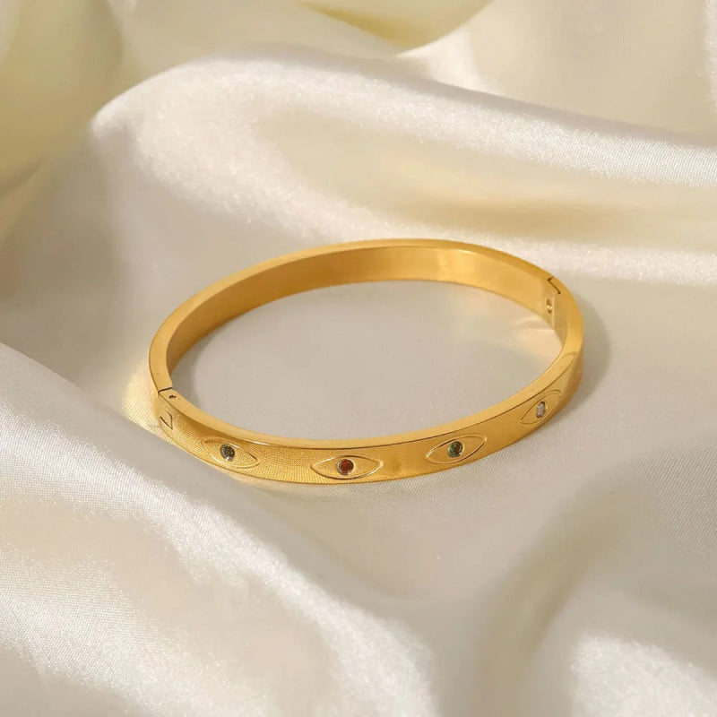 Colorful Round Zircon Eye Bracelet in 18K Gold Stainless Steel