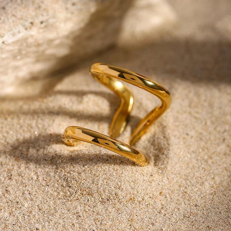 18K Gold Plated Stainless Steel Irregular Wave Ring for Women