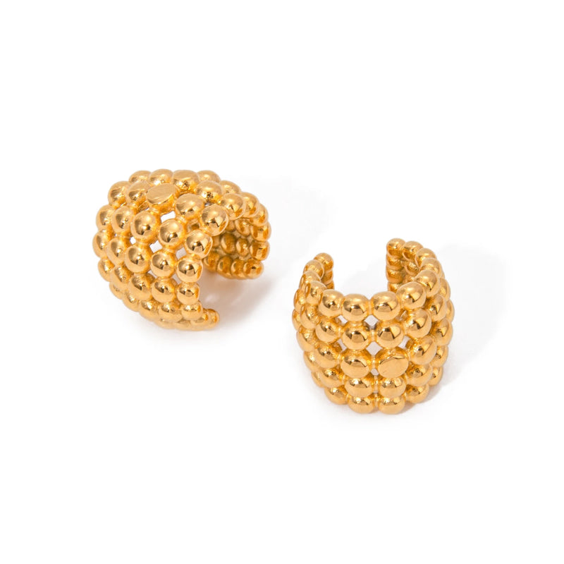 18K PVD Plated Honeycomb Shaped Ear Clips