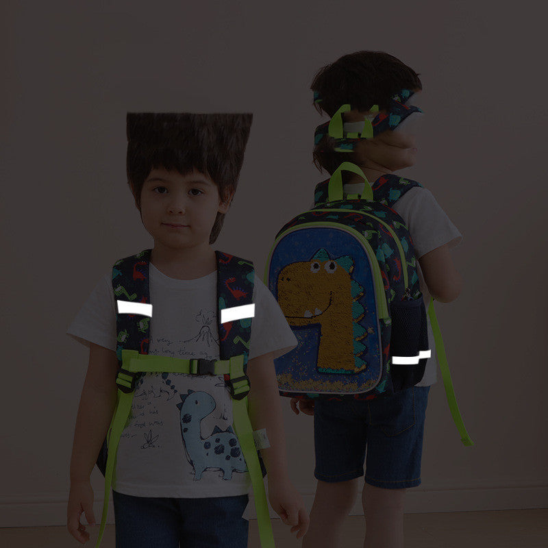 Kindergarten Schoolbag Boy Dinosaur Glitter Discoloration