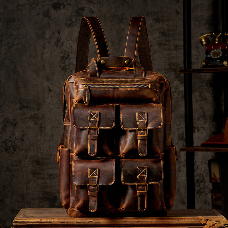 Men's Large Capacity Retro Outdoor Travel Leather Backpack