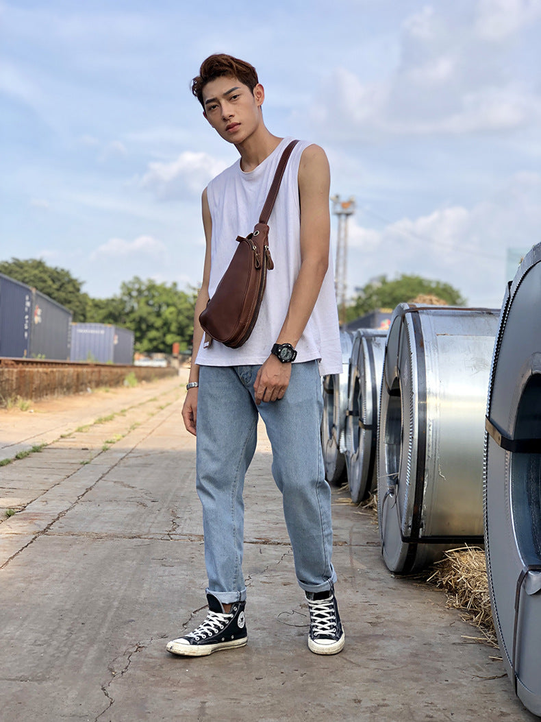 New Trend Leather Chest Bag Fashion Half-Moon Triangle Shoulder Bag Retro Messenger Bag Men's Bags
