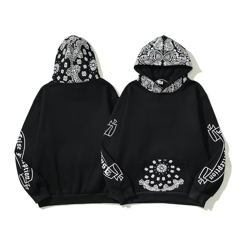 Full Printed Paisley Scroll Stitching Hoodie Sweater