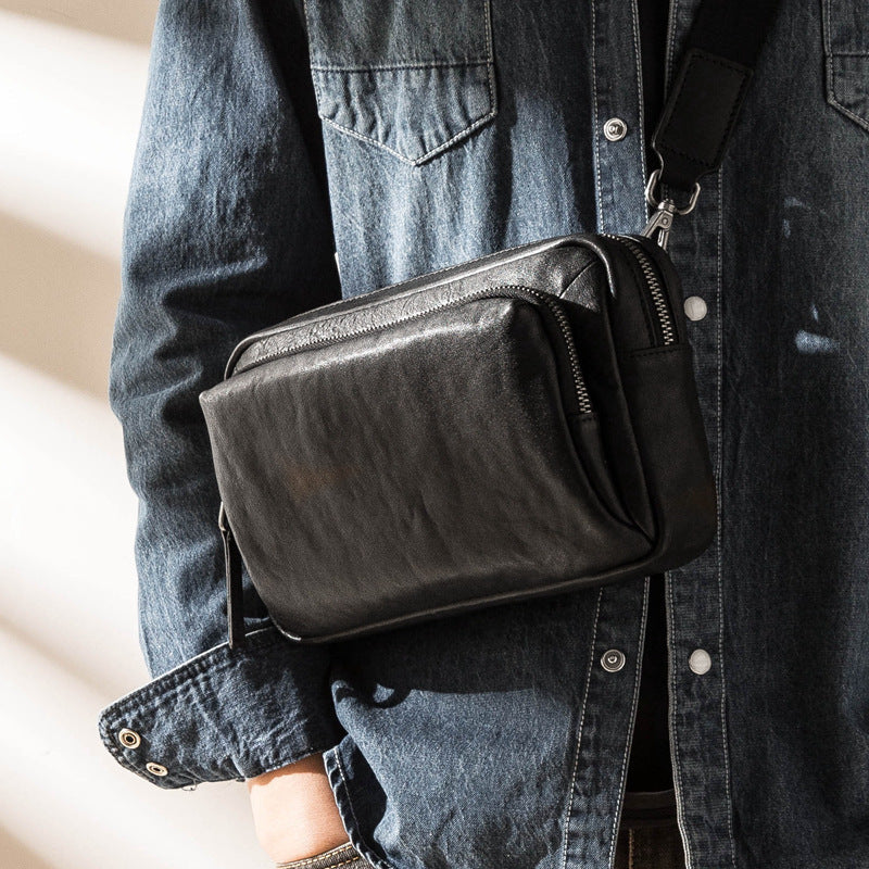 Men's Multi-functional Small Bag Cowhide Fanny Pack One Shoulder Cross-body