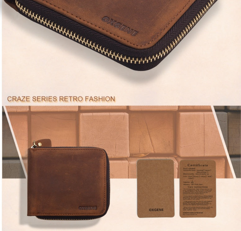 Genuine Leather Men's Retro Fashion Zipper Wallet