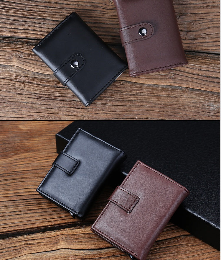 Antimagnetic card wallet aluminum anti-theft brush holder multi-card aluminum alloy card box coin purse leather wallet