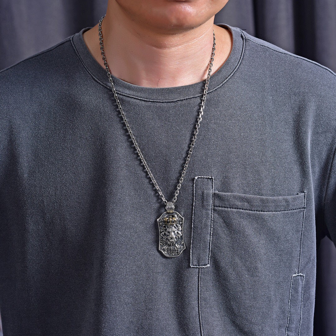 S925 Sterling Silver Thai Silver Necklace Men's Domineering Lion King Pendant
