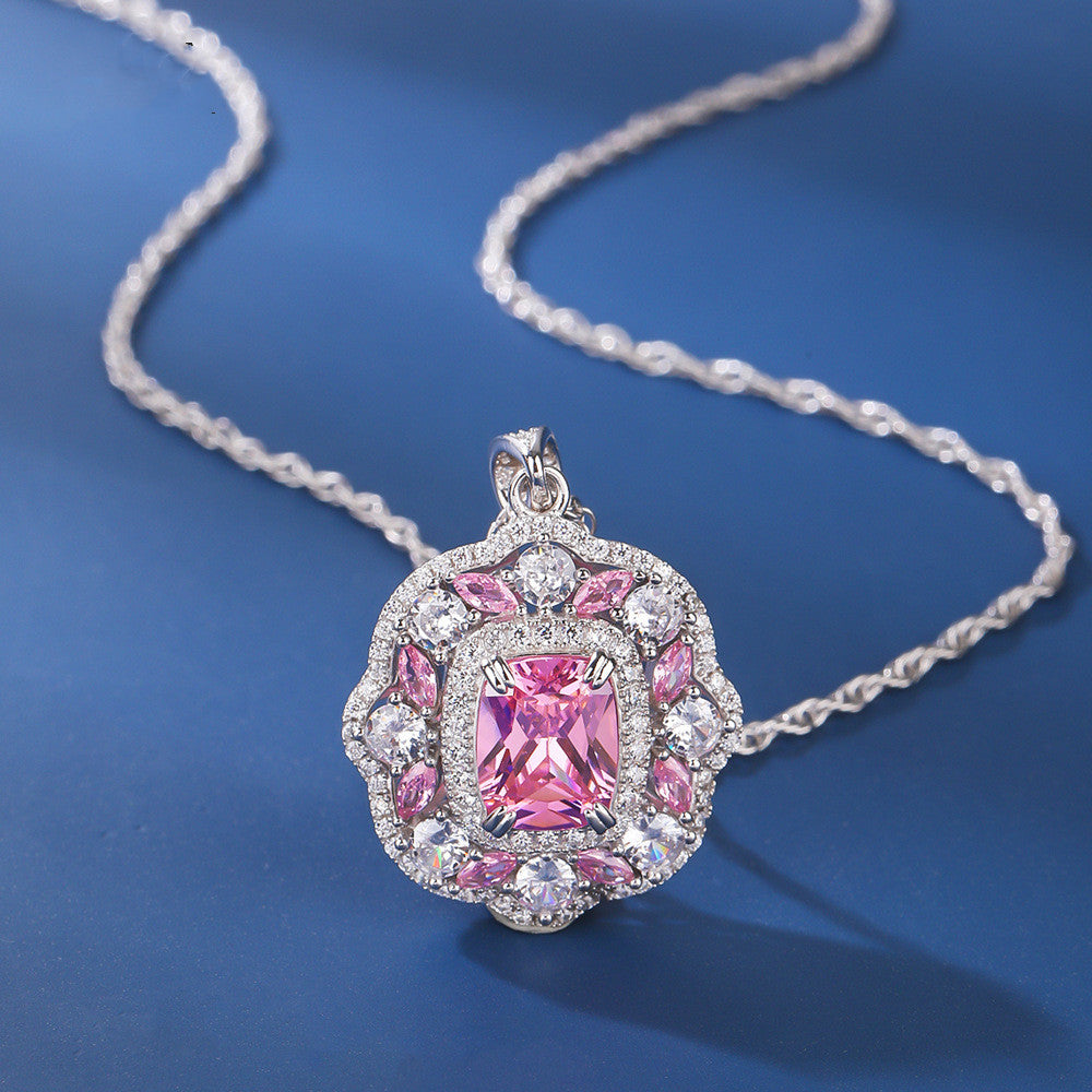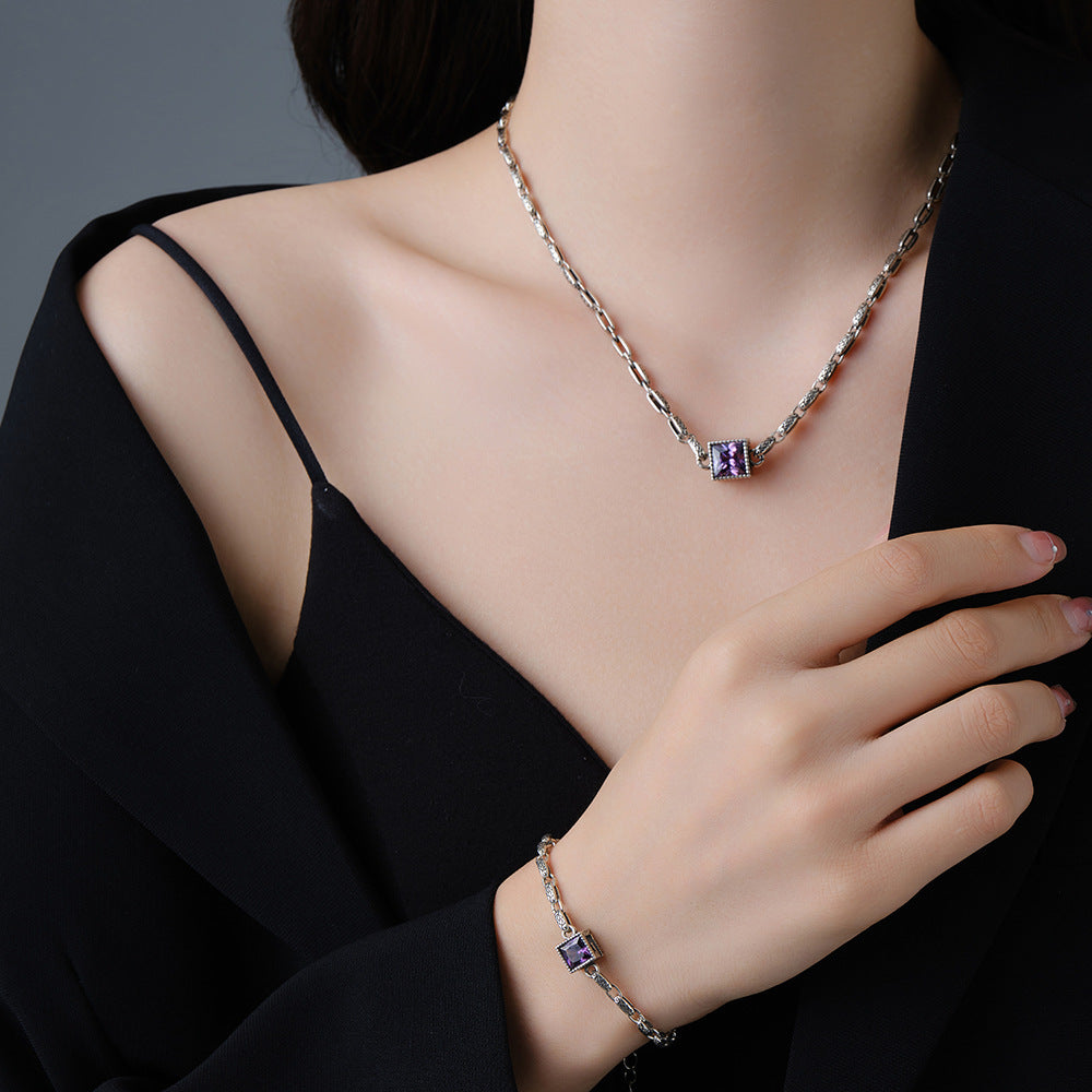 S925 Sterling Silver Purple Yellow Zircon Unique Stereo Retro Necklace For Women