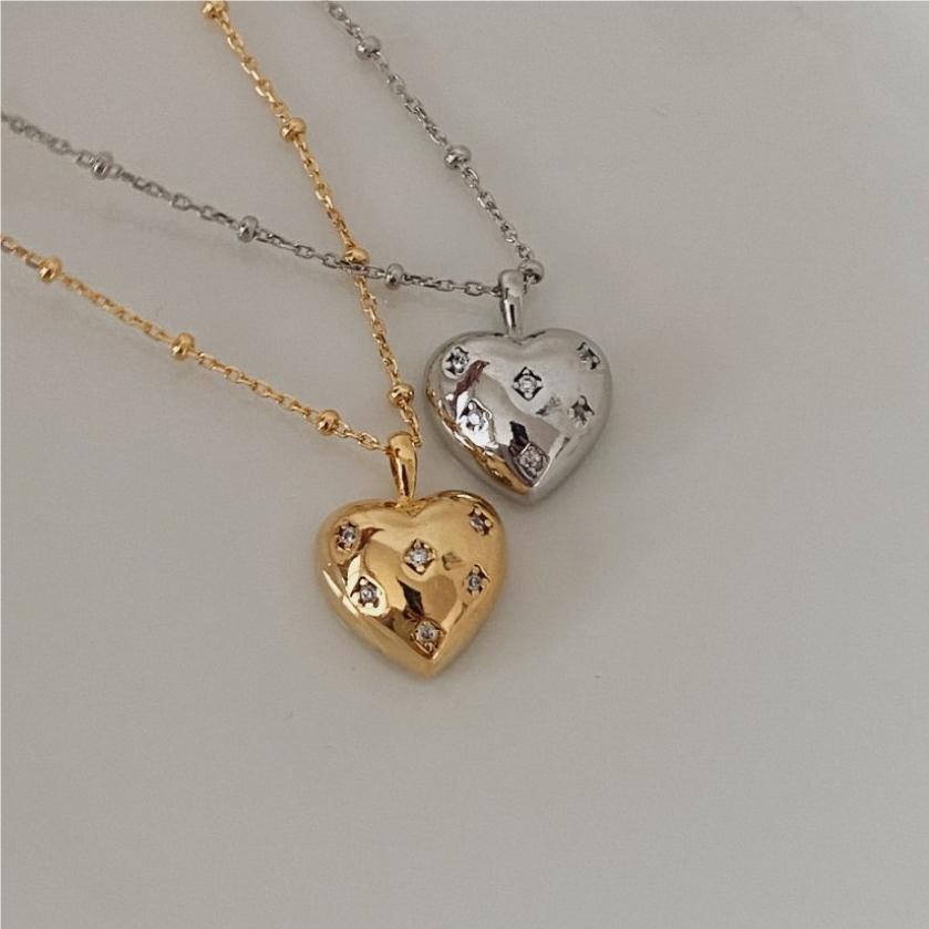 S925 Sterling Silver Ins Wind Topa Stone Love Shaped Pendant Necklace