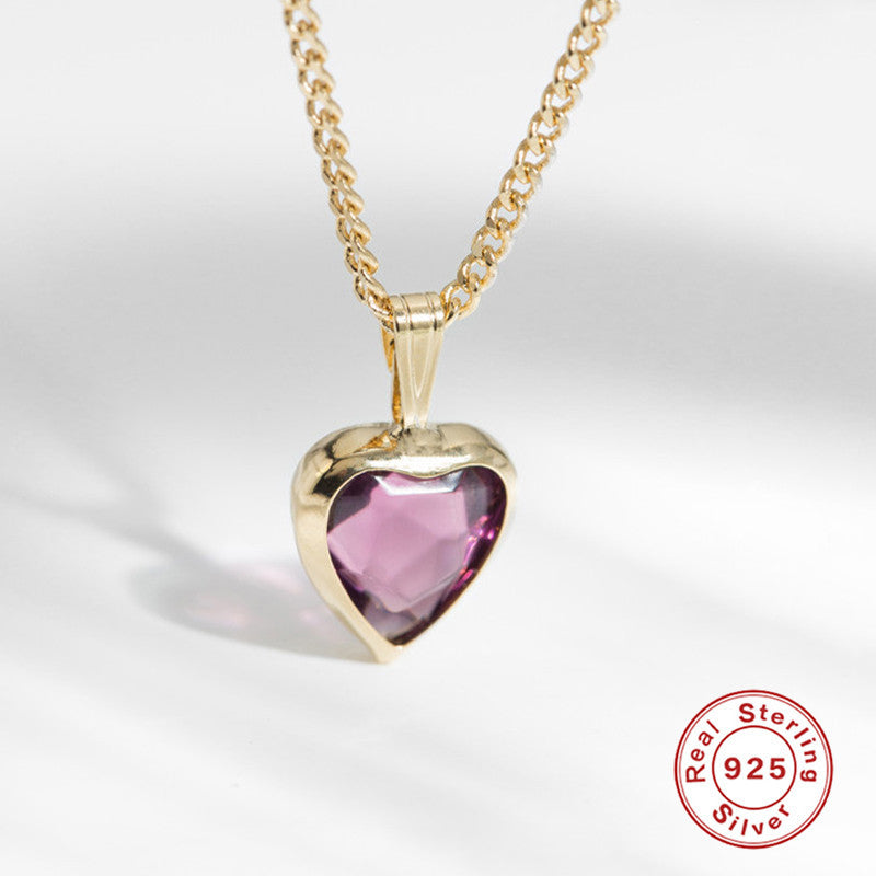 Women's Fashion Simple Birthstone Heart-shaped Pendant Necklace