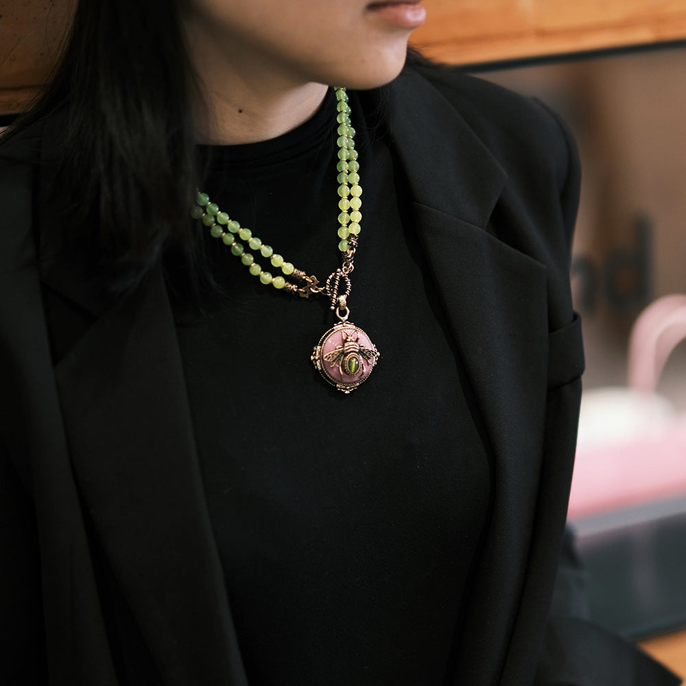 Vintage Collection Natural Agate Chartreuse Beaded Necklace