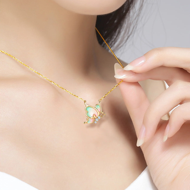 S925 Sterling Silver Necklace Female Plum Blossom Pendant White Fritillary Clavicle Chain