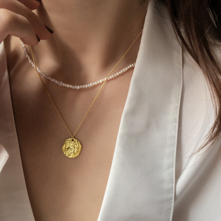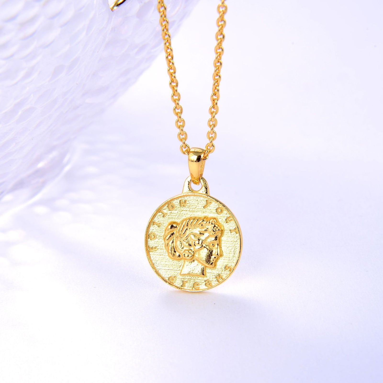 Simple Coin Pendant Necklace Jewelry For Women Retro Roman Style Design And A Sense Of Collarbone Chain