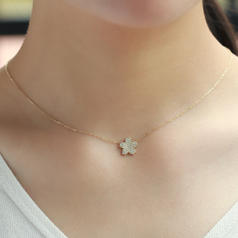 Women's Light Jewelry Sterling Silver Full Diamond Flower Necklace