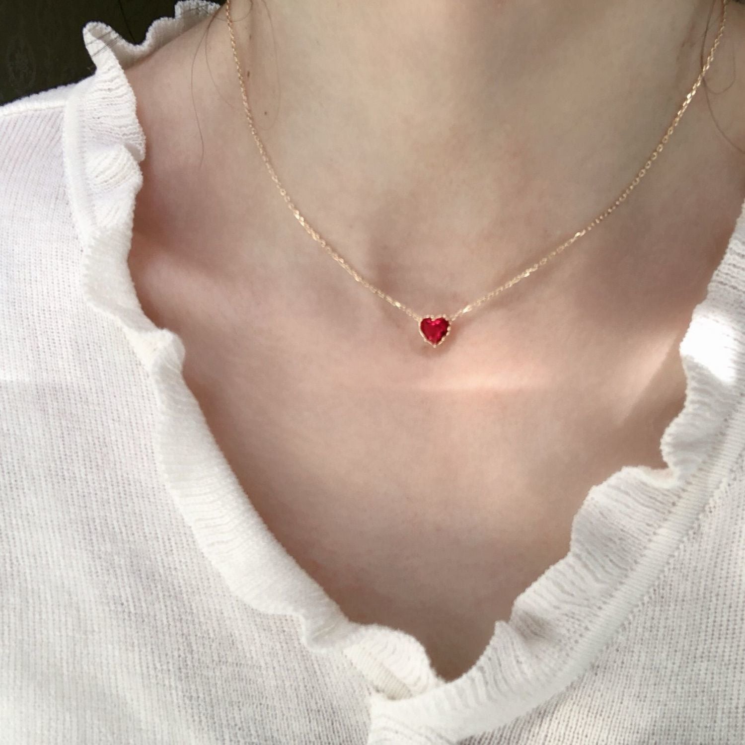 Handmade Dark Bloody Personality Heart Pendant Sterling Silver Necklace