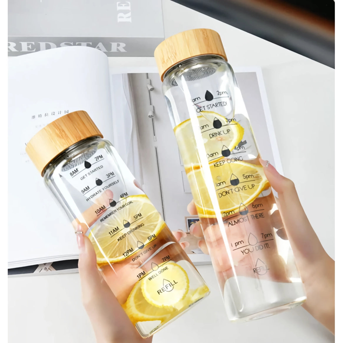 Large Capacity Glass Water Bottle with Marker