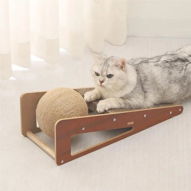 Deluxe Wooden Cat Scratcher with Sisal Ball