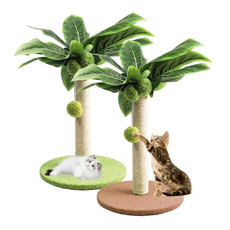 Green Leafy Cat Scratching Post with Sisal Rope and Playful Balls