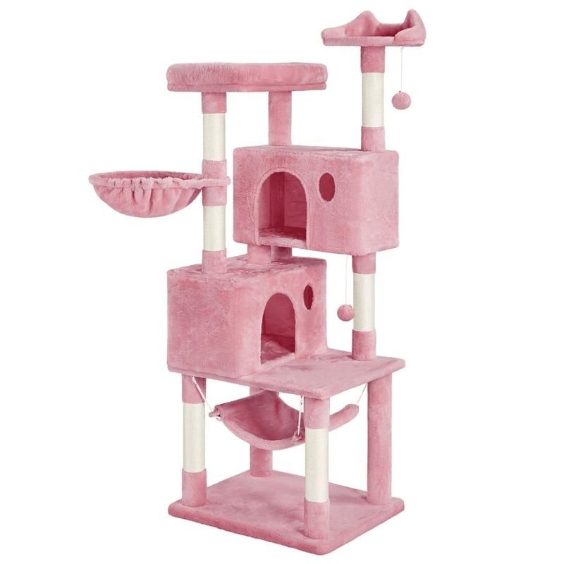 64'' Multi-Level Pink Cat Tree Tower with Condos, Scratching Posts, and Hammock
