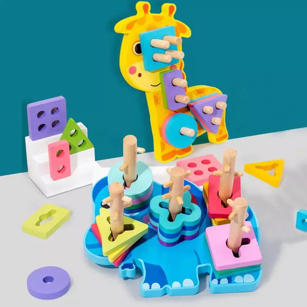 Wooden Animal Shape Puzzle & Stacking Toy for Kids' Development