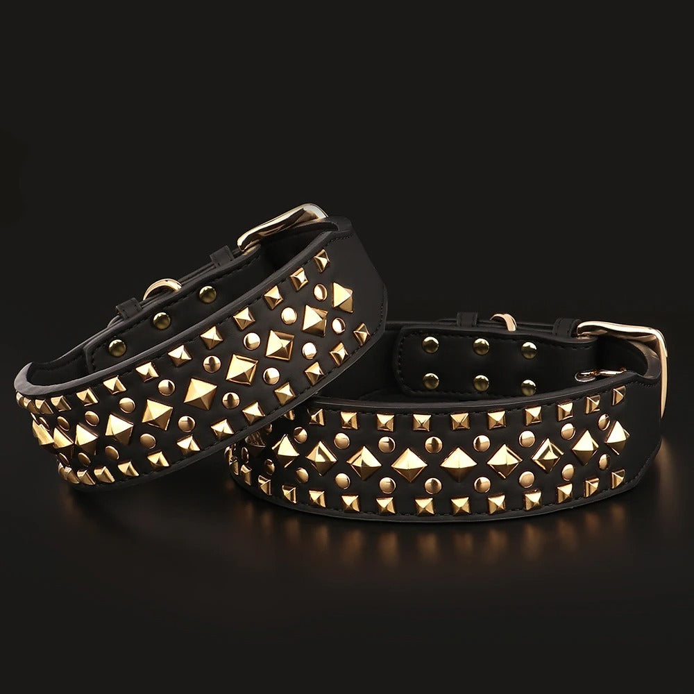 2" Wide Spiked Leather Dog Collar Adjustable for Pitbull, Bulldog, and Large Dogs
