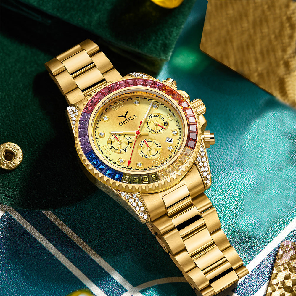 Fashion Business Waterproof Solid Core Fine Steel Band Rainbow Watch