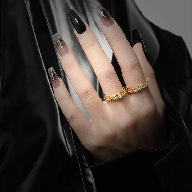 Wrinkled Texture Inlaid With Green Zircon Personalized Opening Ring