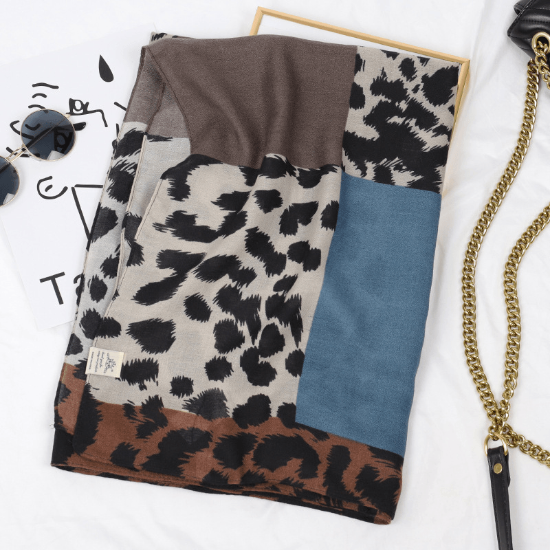 Leopard Print Cotton and Linen Scarf Women Printing Long Gauze Scarf
