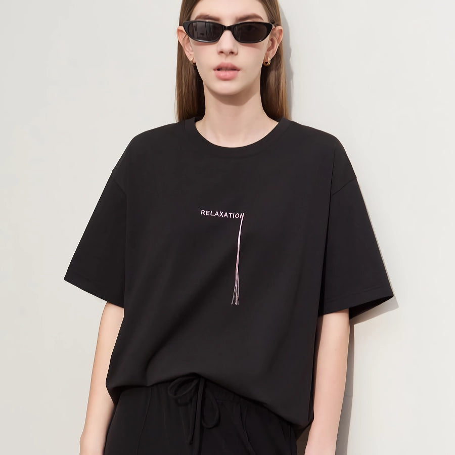 Minimalist Women's Casual Embroidered Tassel Tee