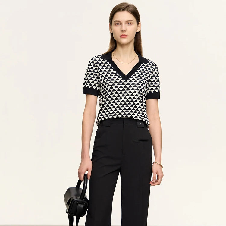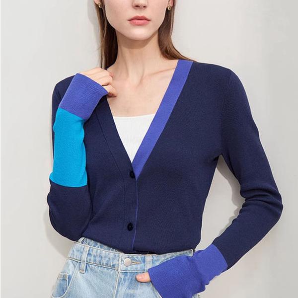 V-Neck Contrast Color Knitwear for Women