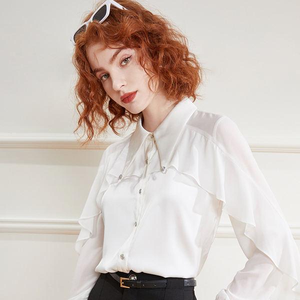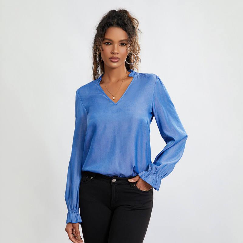 Elegant V Neck Long Sleeve Frill Top for Office Ladies