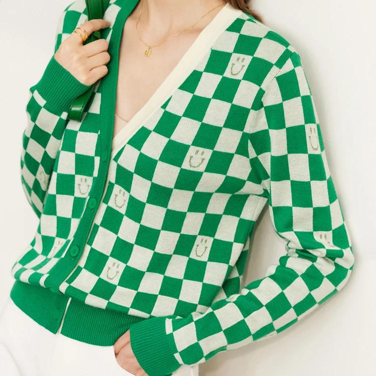 Autumn Loose Plaid V-Neck Cardigan for Women