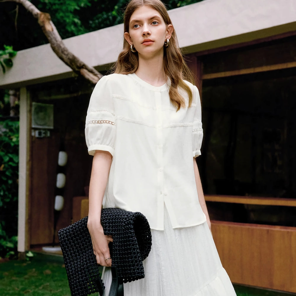 Elegant Blouse with Lace Puff Sleeves
