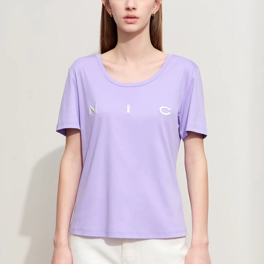 Minimalist O-Neck Embroidered T-Shirt for Women