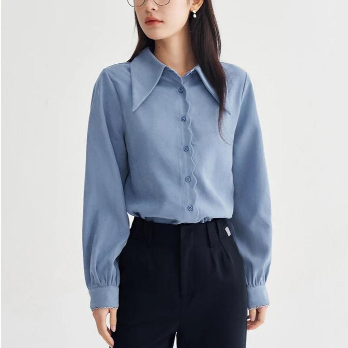 Women's Long Sleeve Button Lapel Blouse