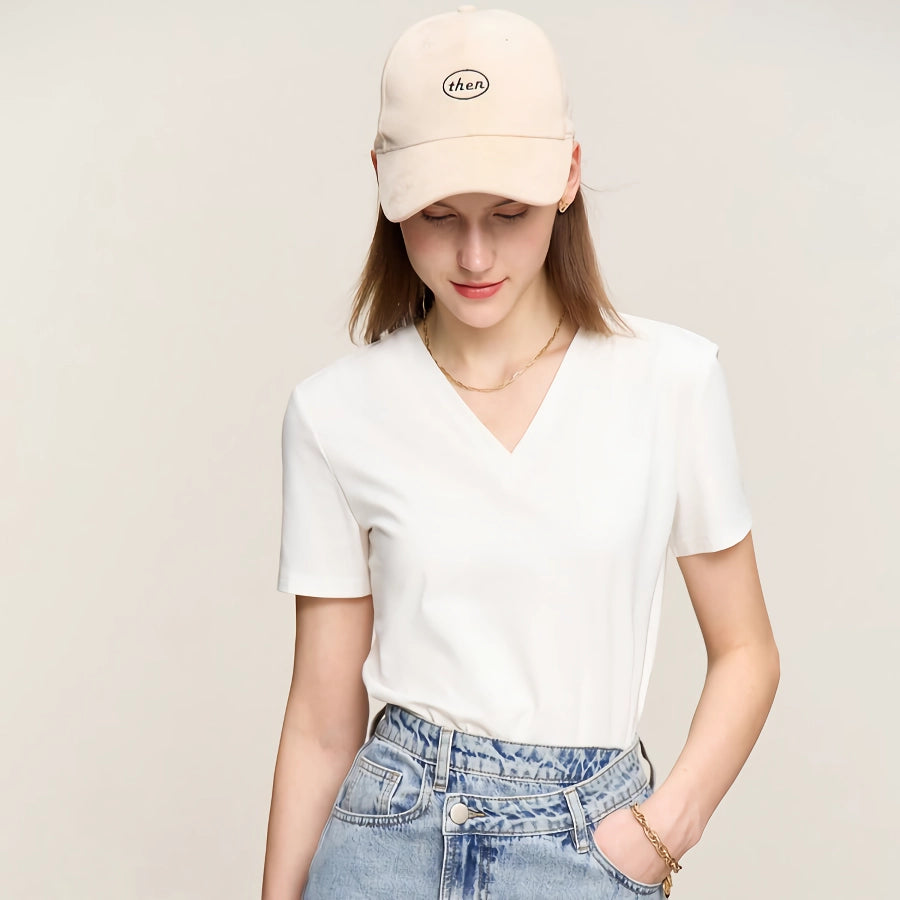 Minimalist Embroidered V-Neck Women's Tee