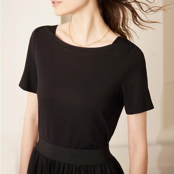 Women’s Minimalist Cotton T-Shirt with One-Line Collar